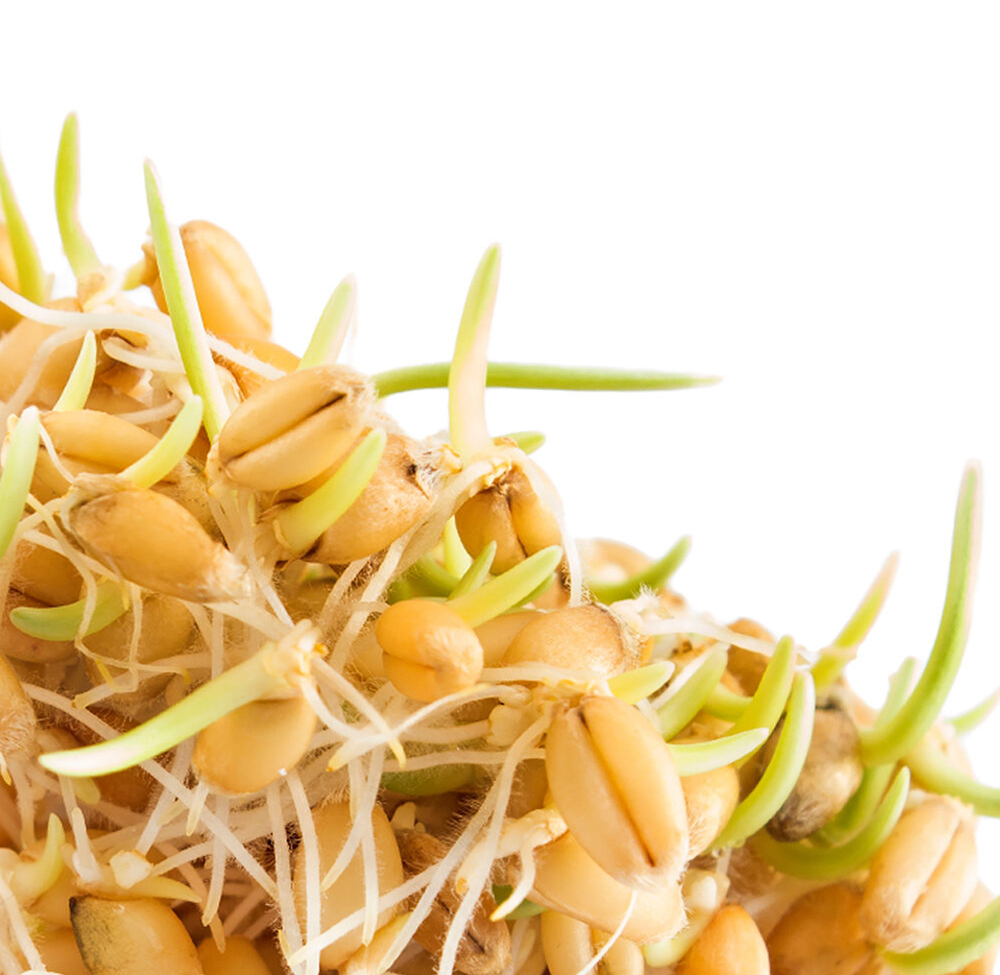 Il processo di germogliazione inizia quando semi e grani vengono immersi in acqua a temperatura controllata. Dopo 24-48 ore, la germogliazione viene fermata al suo punto più ottimale. Viene poi effettuato un doppio trattamento termico per stabilizzare il prodotto. I germogliati termotrattati si presentano come prodotti estremamente puliti e privi di contaminazione o cariche microbiologiche.